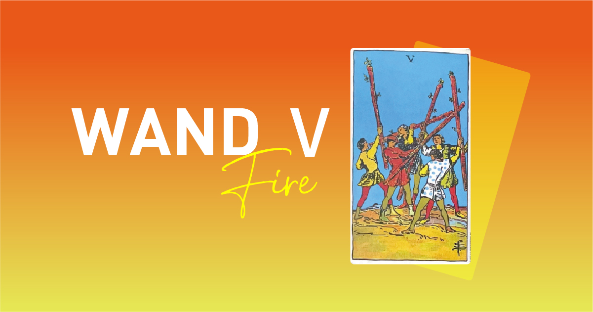 ワンドの5は、火のエレメントがもたらす“競争・対立・試練”のエネルギーを象徴するカードです。